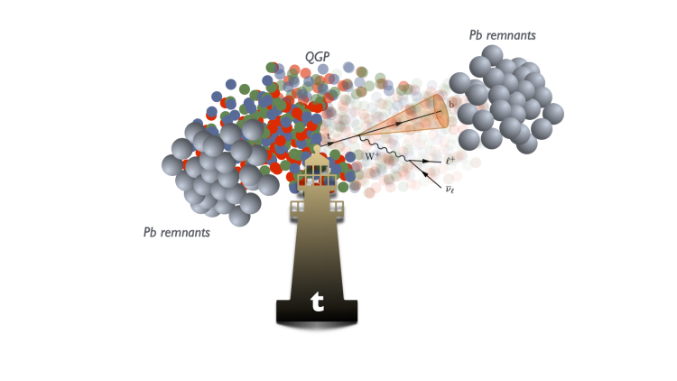 The top quark is in the heavyweight league of high energy physics, weighing almost as much as a gold nucleus. However, in contrast to atomic nuclei, which are composed of protons and neutrons and have physical dimensions of the order of 1-10 fermi, the top quark is an elementary particle and behaves as a point particle. Its production and properties have been largely studied in CMS in proton-proton collisions, and they are so well known that CMS researchers repurposed it as a lighthouse to shed light on what happens in collisions of lead ions, as illustrated above.