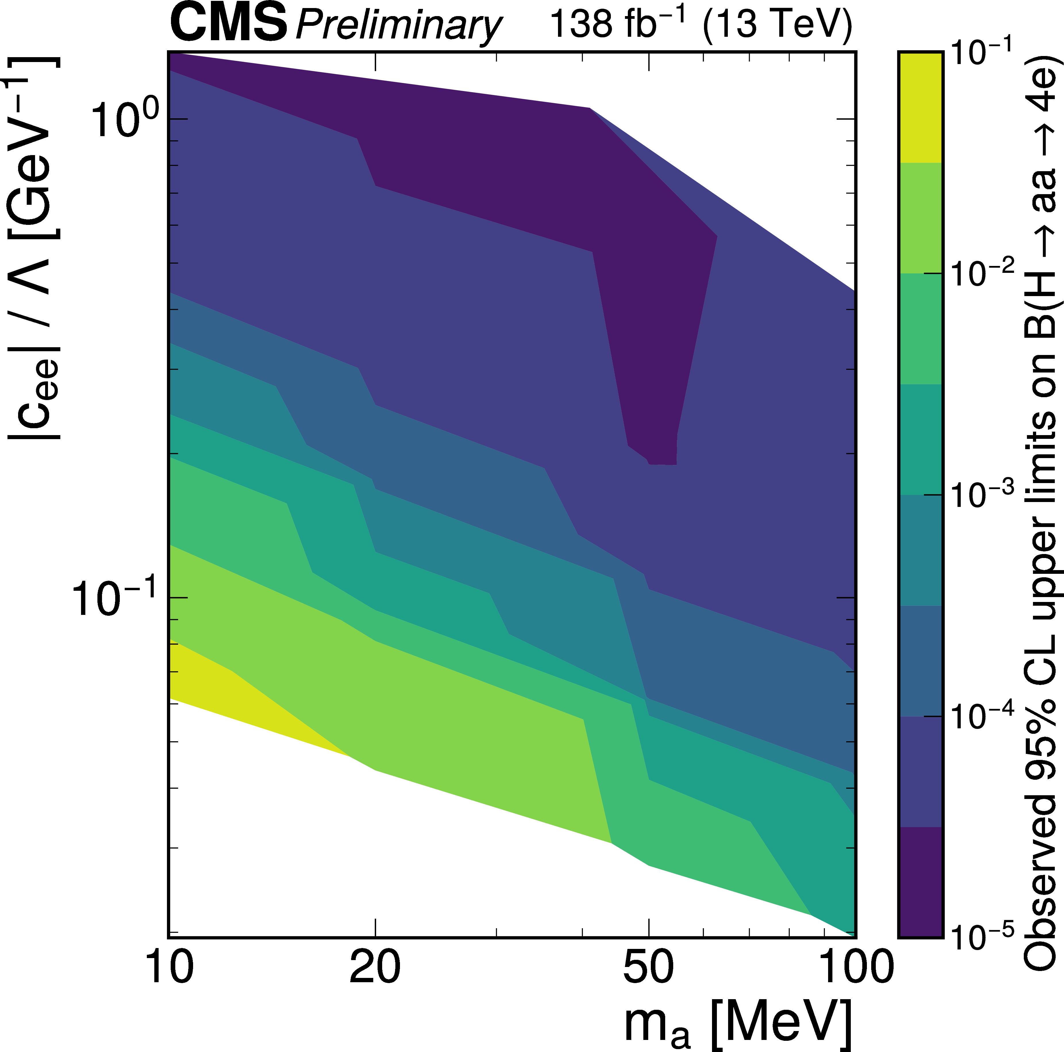 No significant excess above the Standard Model prediction was observed in the full Run 2 dataset (Figure 2, left). However, the analysis sets new stringent limits on such exotic Higgs boson decays, excluding branching fractions down to the order of 10⁻⁵ (Figure 2, right). “This is the most sensitive search in the electron channel so far, and the first to set limits on such light-weight neutral particles from Higgs boson decays with masses down to 10 MeV”, says Yipin Wang, a Ph.D. student at Peking University who has focused on this search since his undergraduate thesis.
